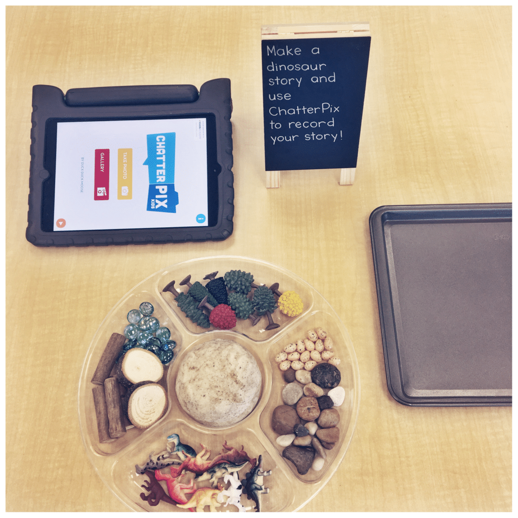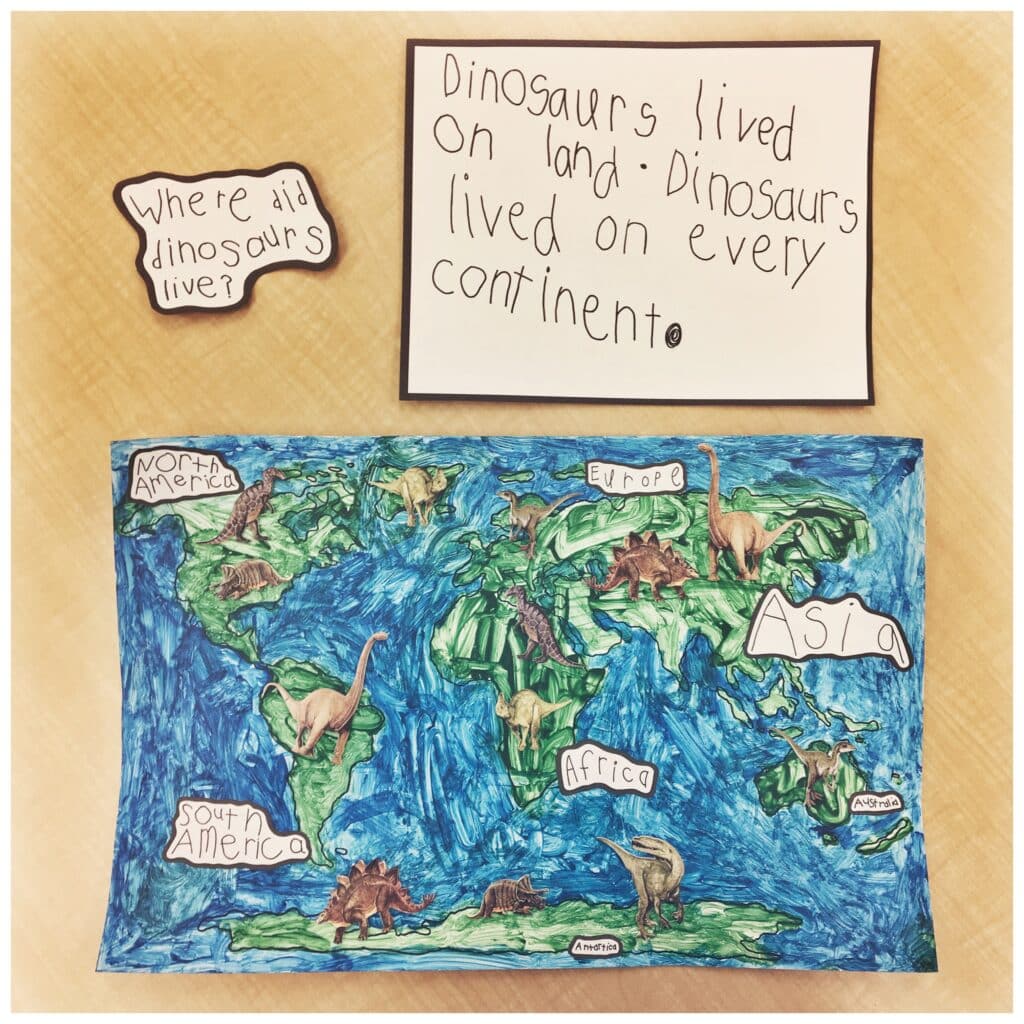 I had the girl who asked the question (and anyone else who wanted to!) “Were dinosaurs real or just a story?” work with me to record this to add to our inquiry board during centre time: