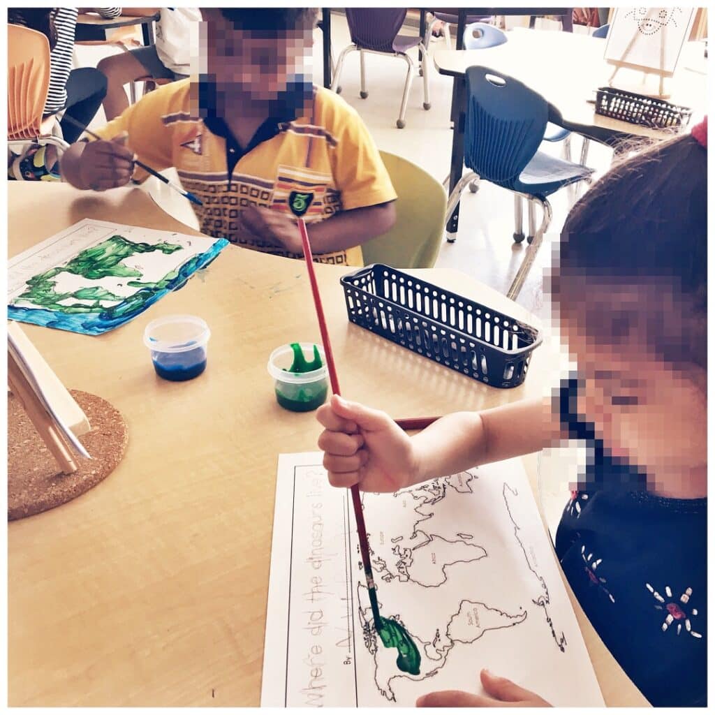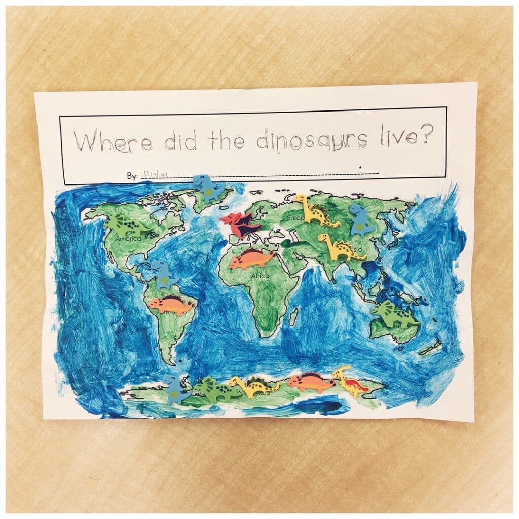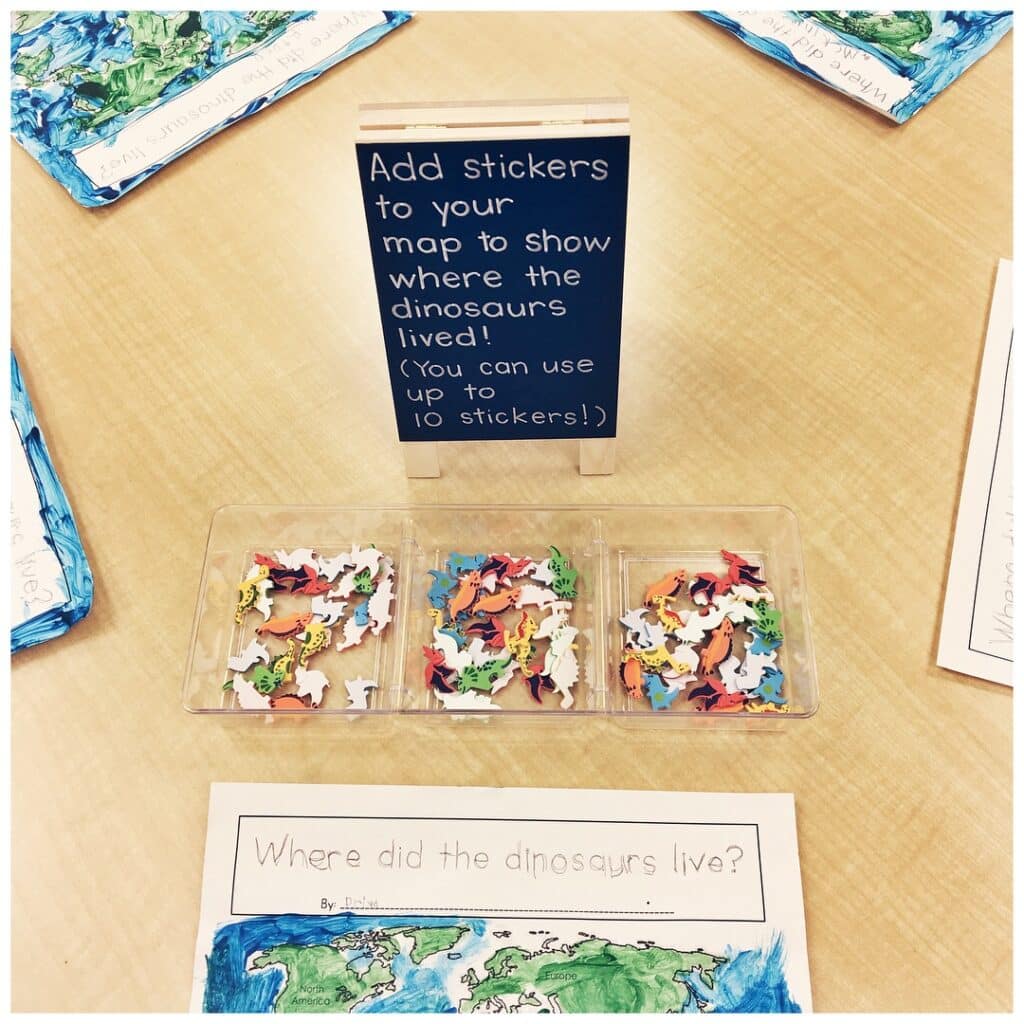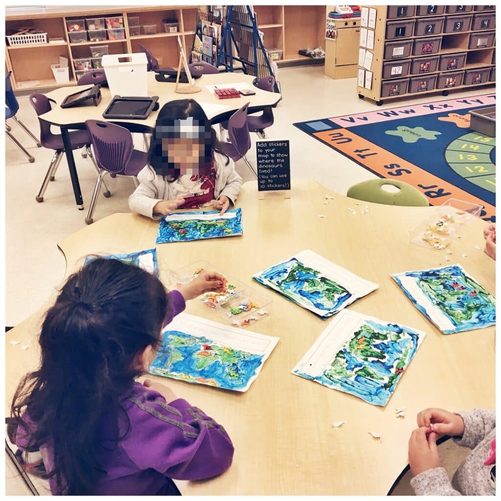 Students were also invited to add mini dinosaur stickers to their own maps.